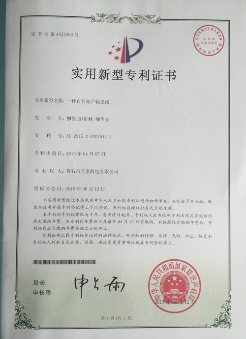 我公司“自行小車輸送系統(tǒng)”獲得國(guó)家專利。